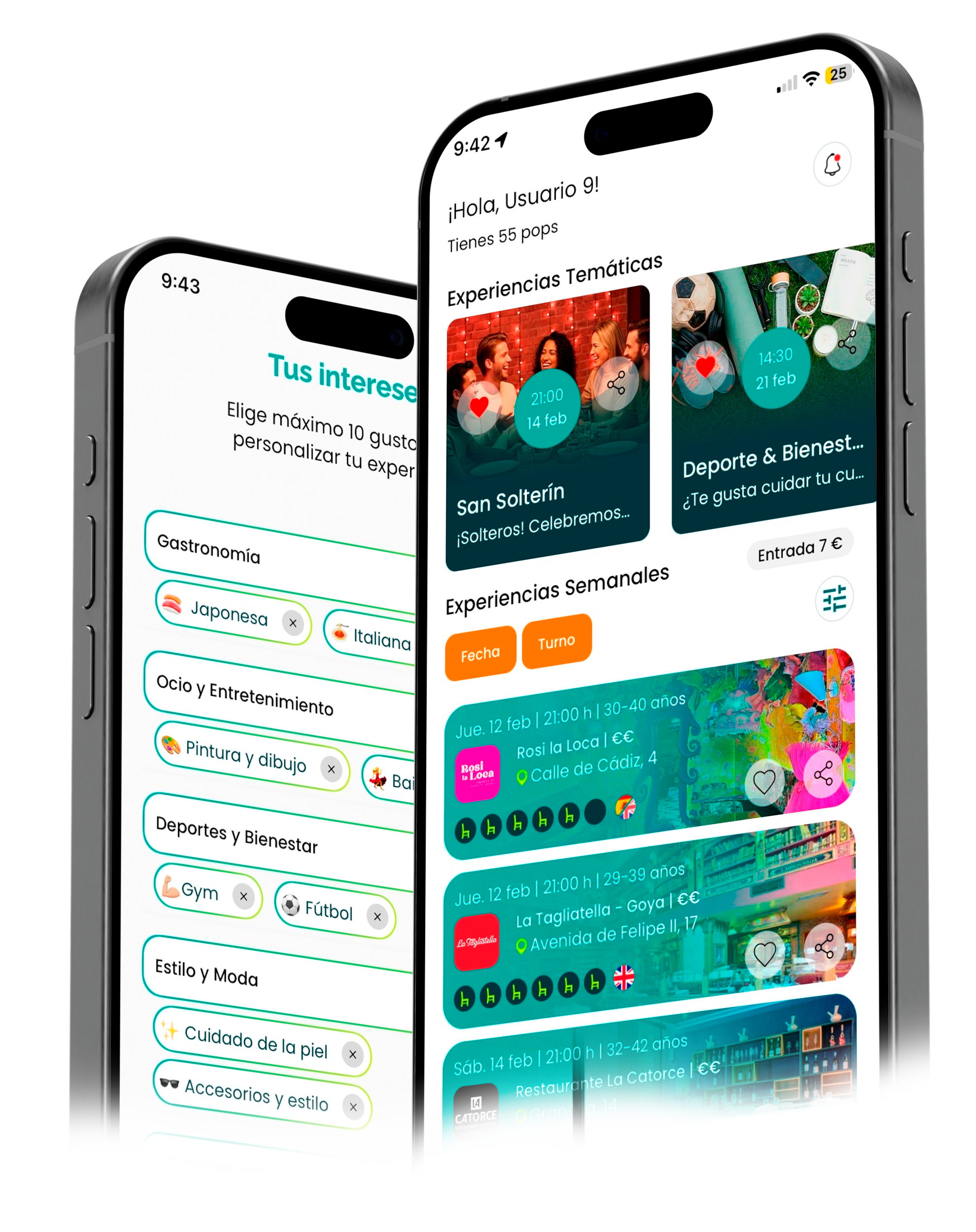 En la App seleccionas la experiencia que más te guste (vista en lista o mapa), eliges tu mesa y confirmas tu plaza. También puedes crear una mesa nueva con tus preferencias de idioma, edad o temática.